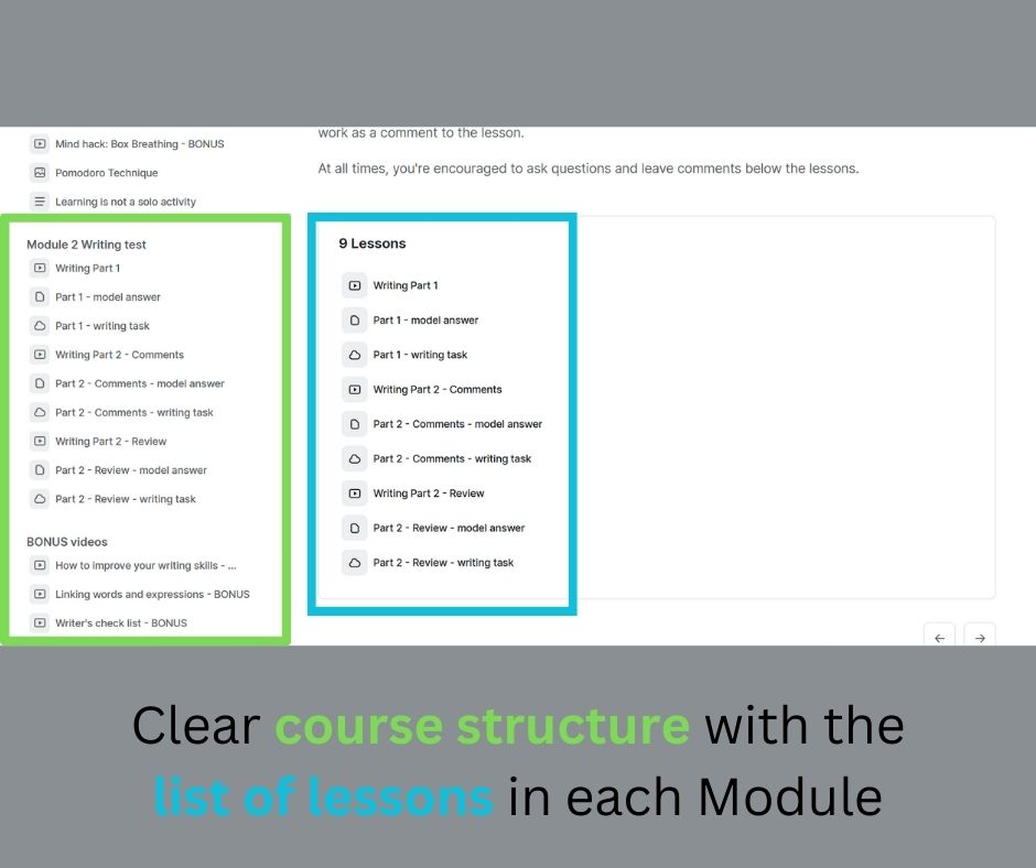 Every lesson introducing new exam parts and tasks as well as new aspects of exam preparation is in a video format - easy to watch or listen to.